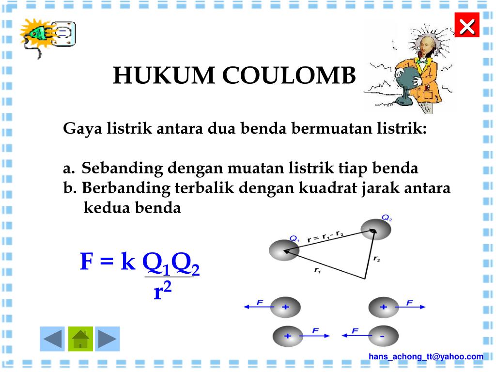 Plastik yang digosok gosok dengan kain wol maka plastik akan menjadi bermuatan listrik negatif, karena elektron kain wol pindah plastik. Hubungan antara gaya coulomb, kuat medan, energi. Materi, kelas 12 ipa 4, selasa 27 oktober 2020. Fisika kelas 12 listrik statis, pengertian listrik statis, rumus listrik statis, dan contoh penerapan listrik statis. Modul ini akan membantu anda memahami tentang gaya coulomb, kuat medan listrik, potensial dan energi potensial listrik statis, serta penerapannya dalam .