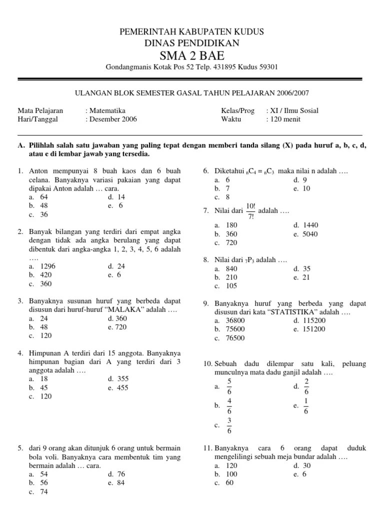 Soal ukk pat sma ma kelas 10 x dan 11 xi kurikulum 2013. Soal ujian matematika kelas 11 semester 1 dan kunci jawaban kurikulum 2013 berikut ini . Maka total belanjaan bu arida yaitu. Prediski soal latihan & kunci jawaban penilaian akhir tahun (pat/ukk) kelas xi mapel matematika wajib semester 2 (genap) kurikulum 2013 ta. Soal pat (ukk) ini ialah kumpulan file .